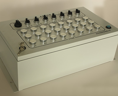 24個普通按鈕,7個3檔旋鈕,1個8檔旋鈕;